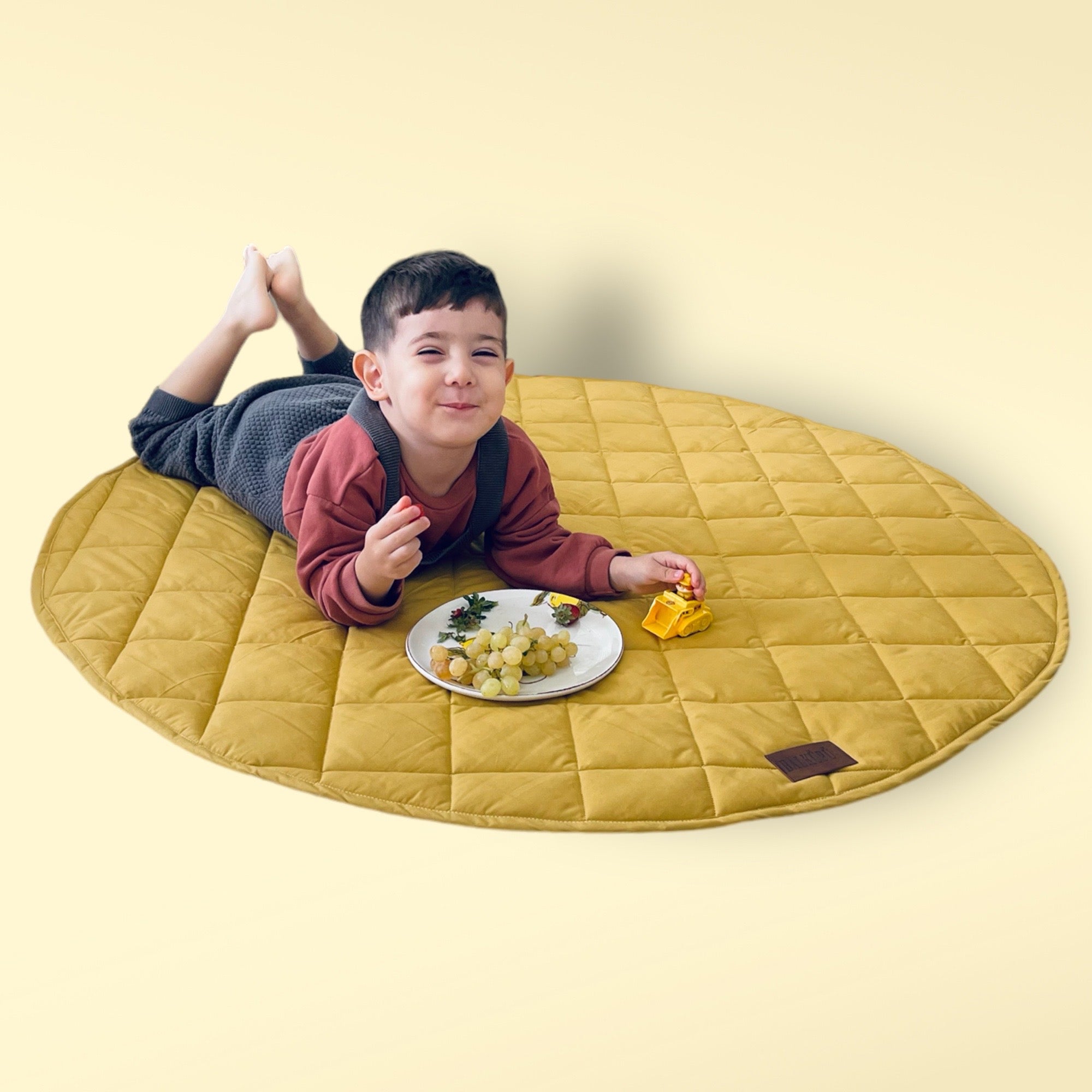 Ayçiçeği - Kapitone %100 Pamuk Oyun Matı (Yuvarlak)