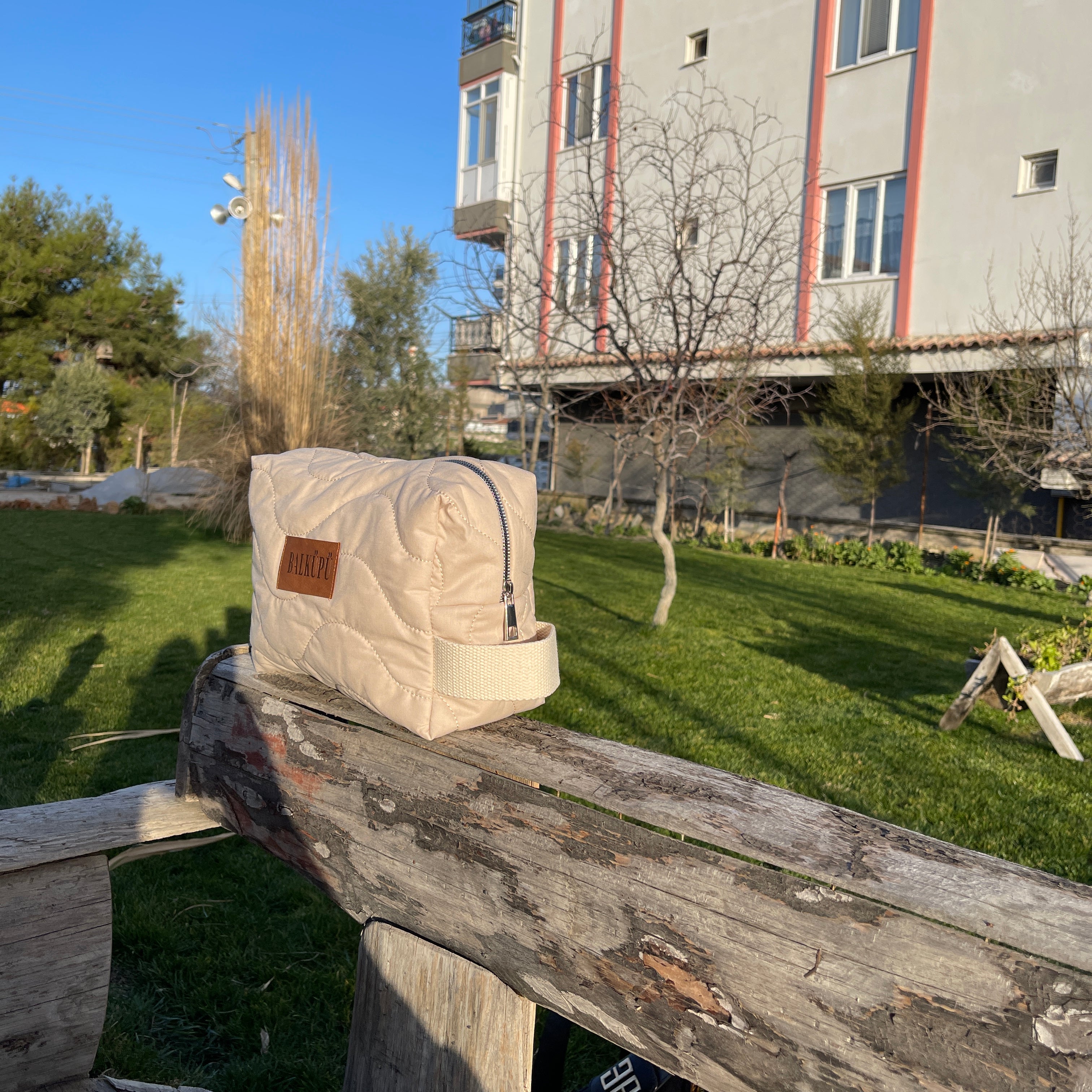Organik Pamuklu Organizer Bakım Çantası - Kum beji