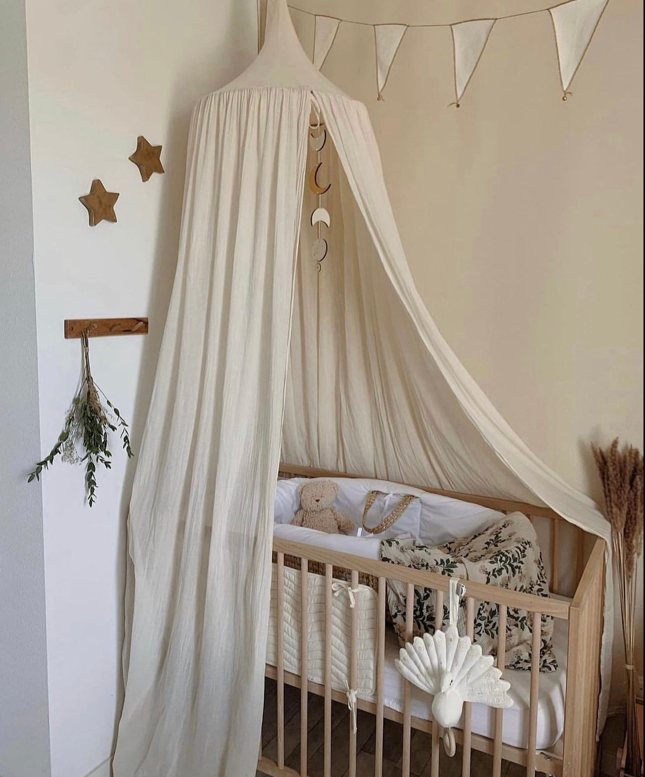 Bu organik pamuklu cibinlik ile gökyüzüne uzanın ve kendinizi rüyalar evrenine teslim edin. Çift kat müslinden yapılmış, uçuşan ve narin kumaşı sayesinde bebeğinizin beşiği veya çocuğunuzun okuma köşesi için mükemmel bir yatak dekorasyonu haline gelir. Çocuklar içeride kendilerini güvende hissedecek ve huzur içinde uykuya dalacaklar.