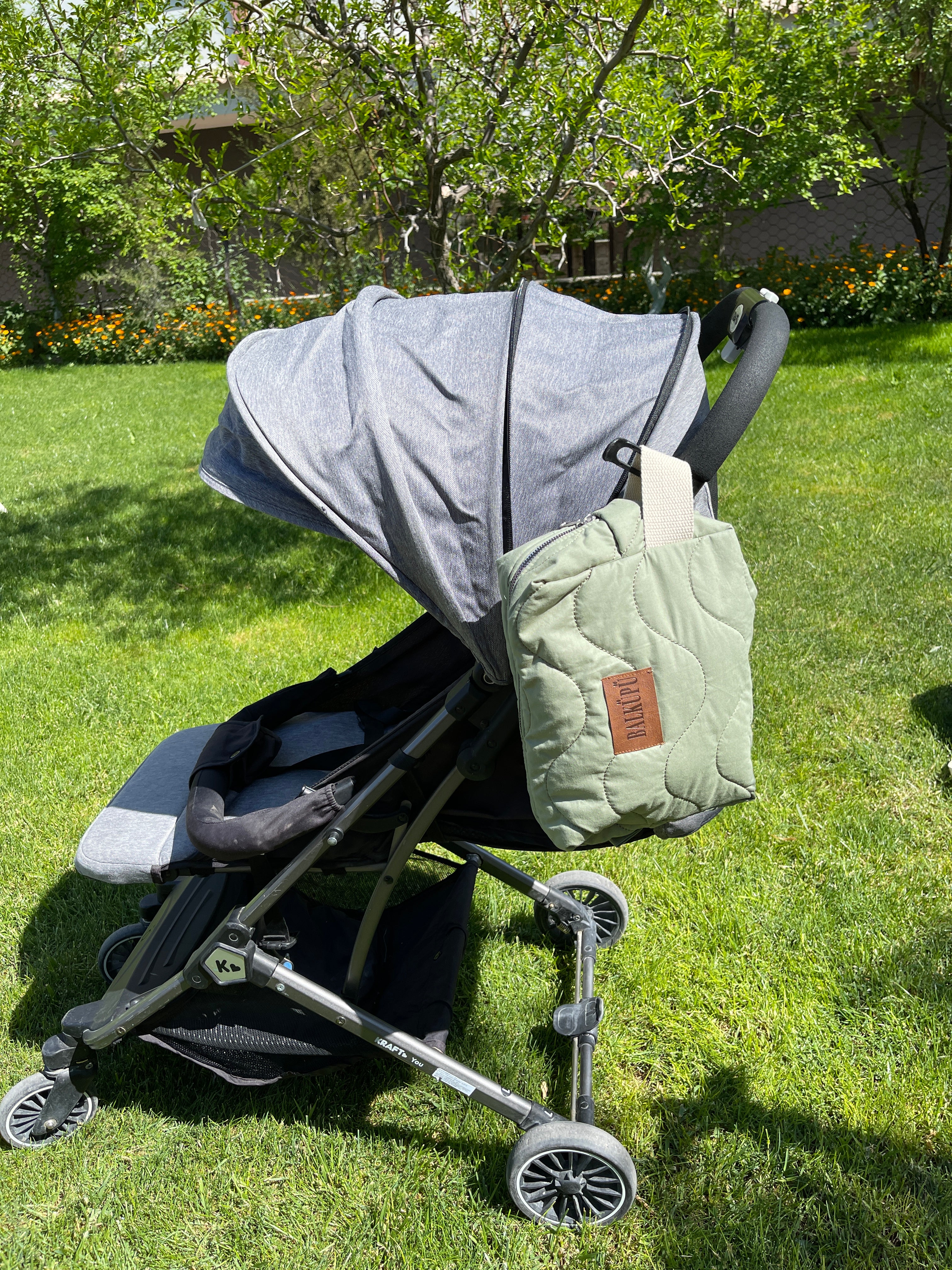 - Sapını kullanarak bebek arabanızın kancasına (dahil değildir) takın.