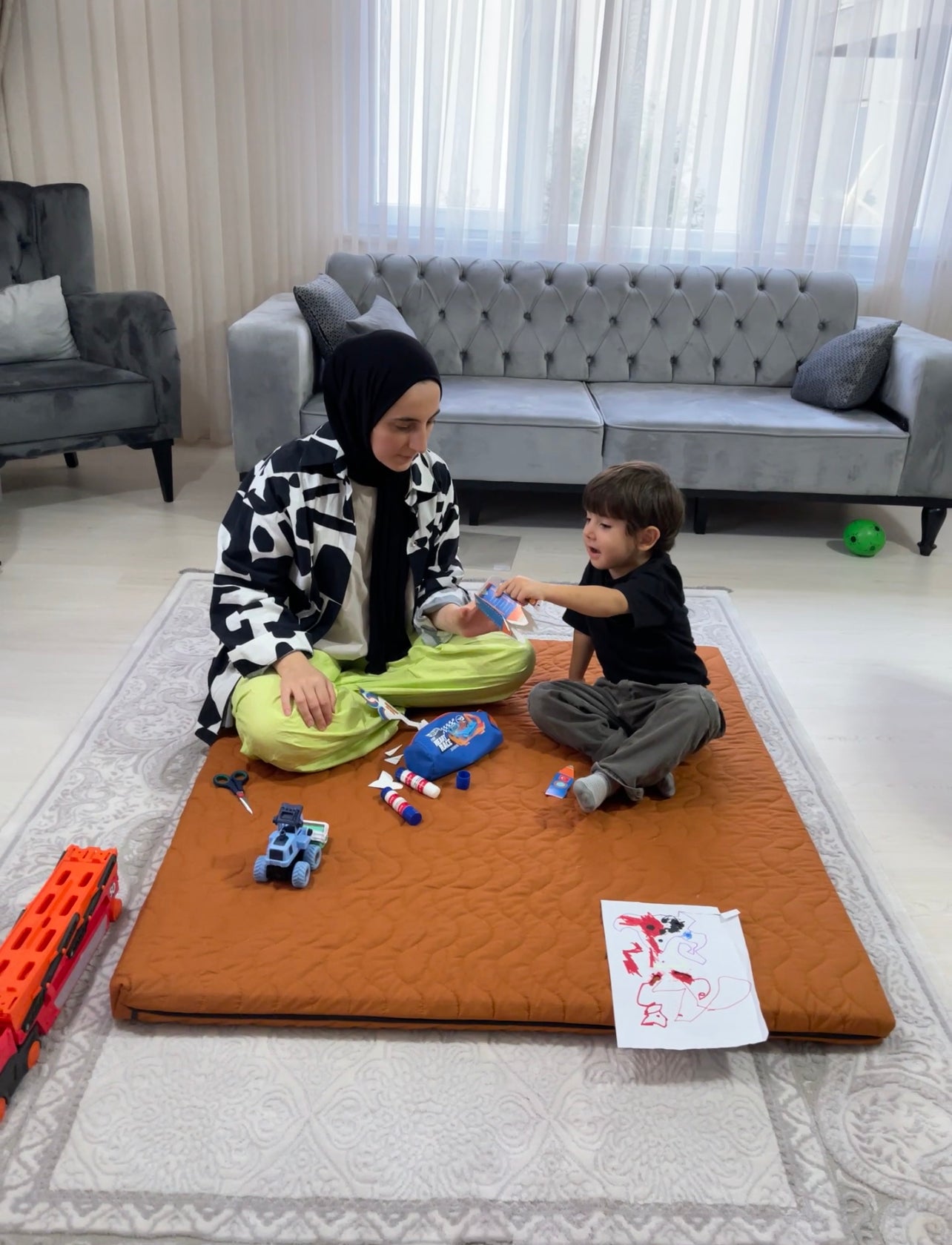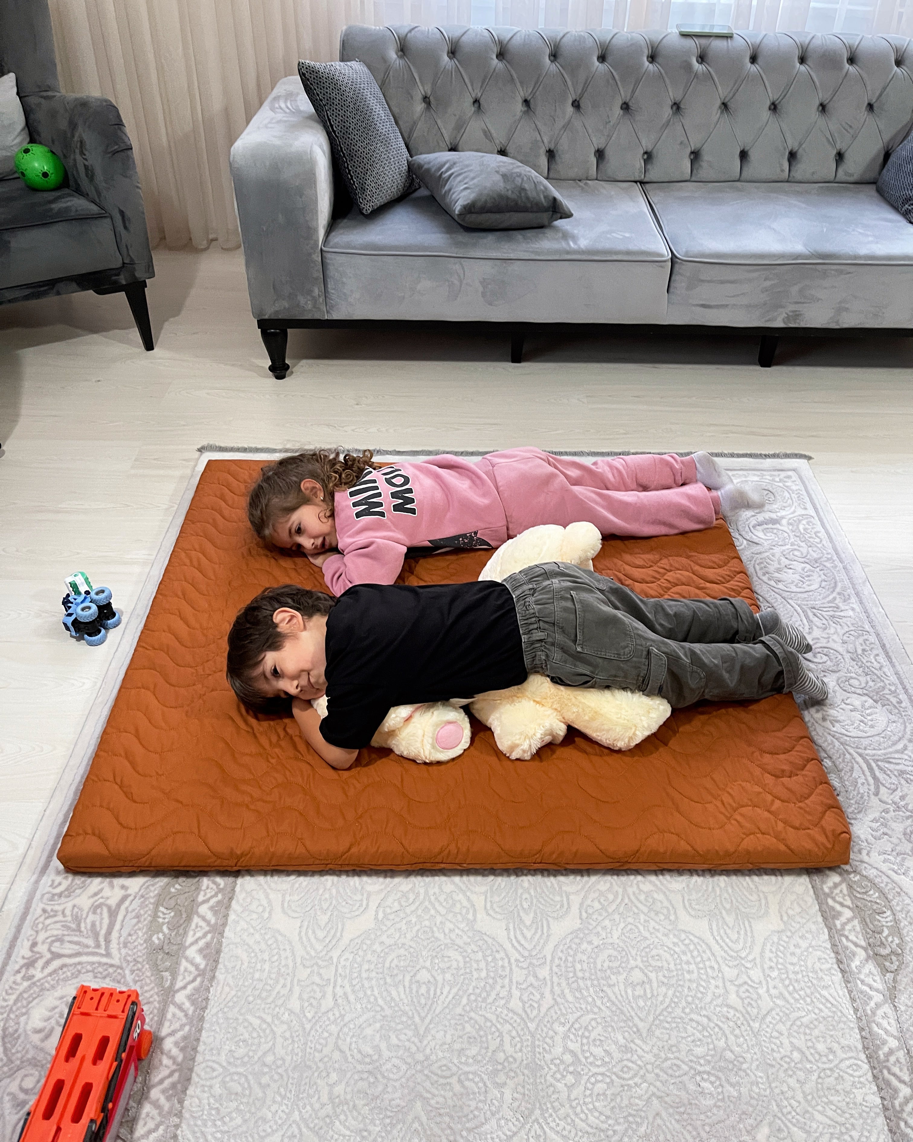 Çocuklar için organik süngerli mat. Çocukların oynayabileceği, kestirebileceği veya rahatlayabileceği bir mat.