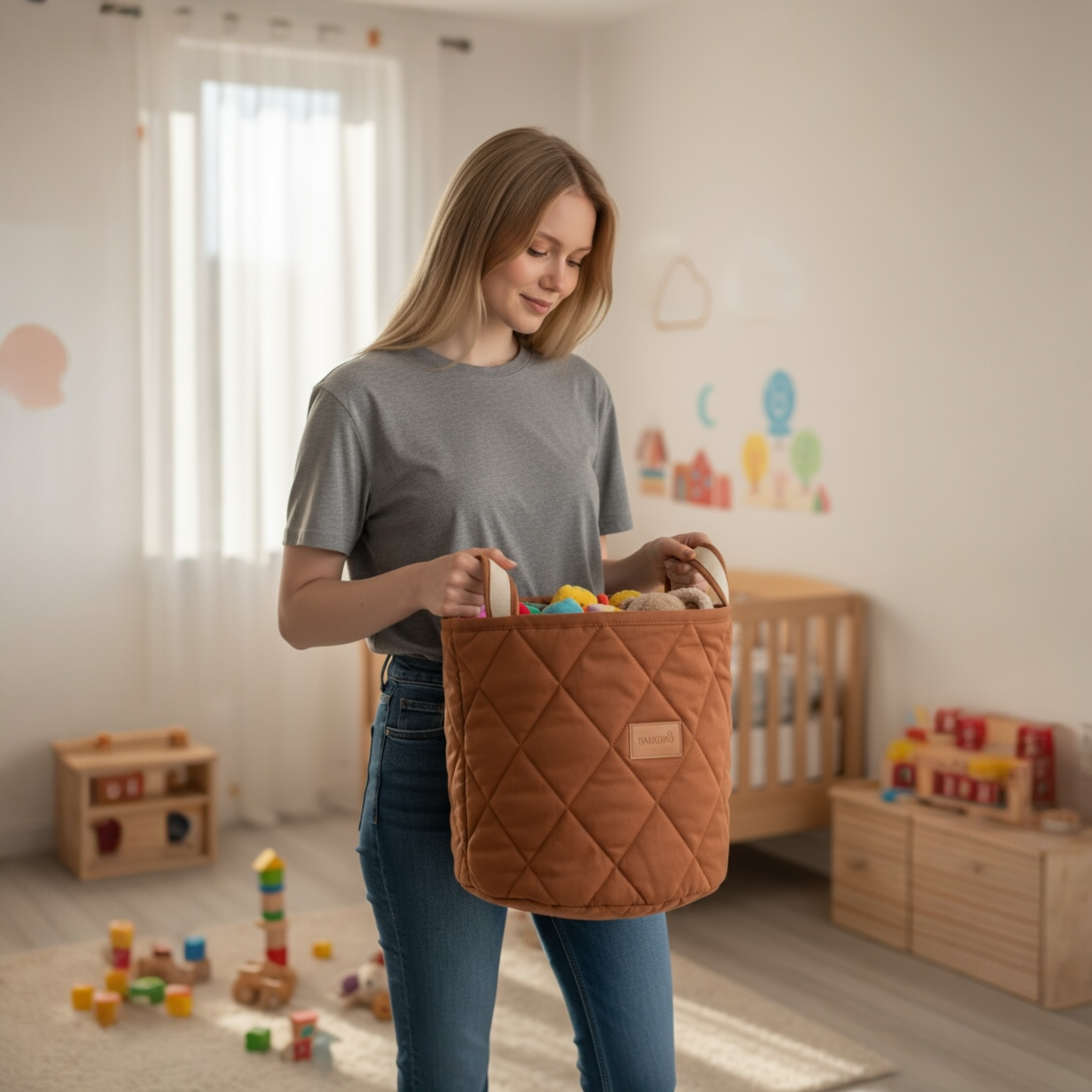 Büyük Boy Pamuk Oyun Matı ve Halısı - Zeytin Kabuğu
