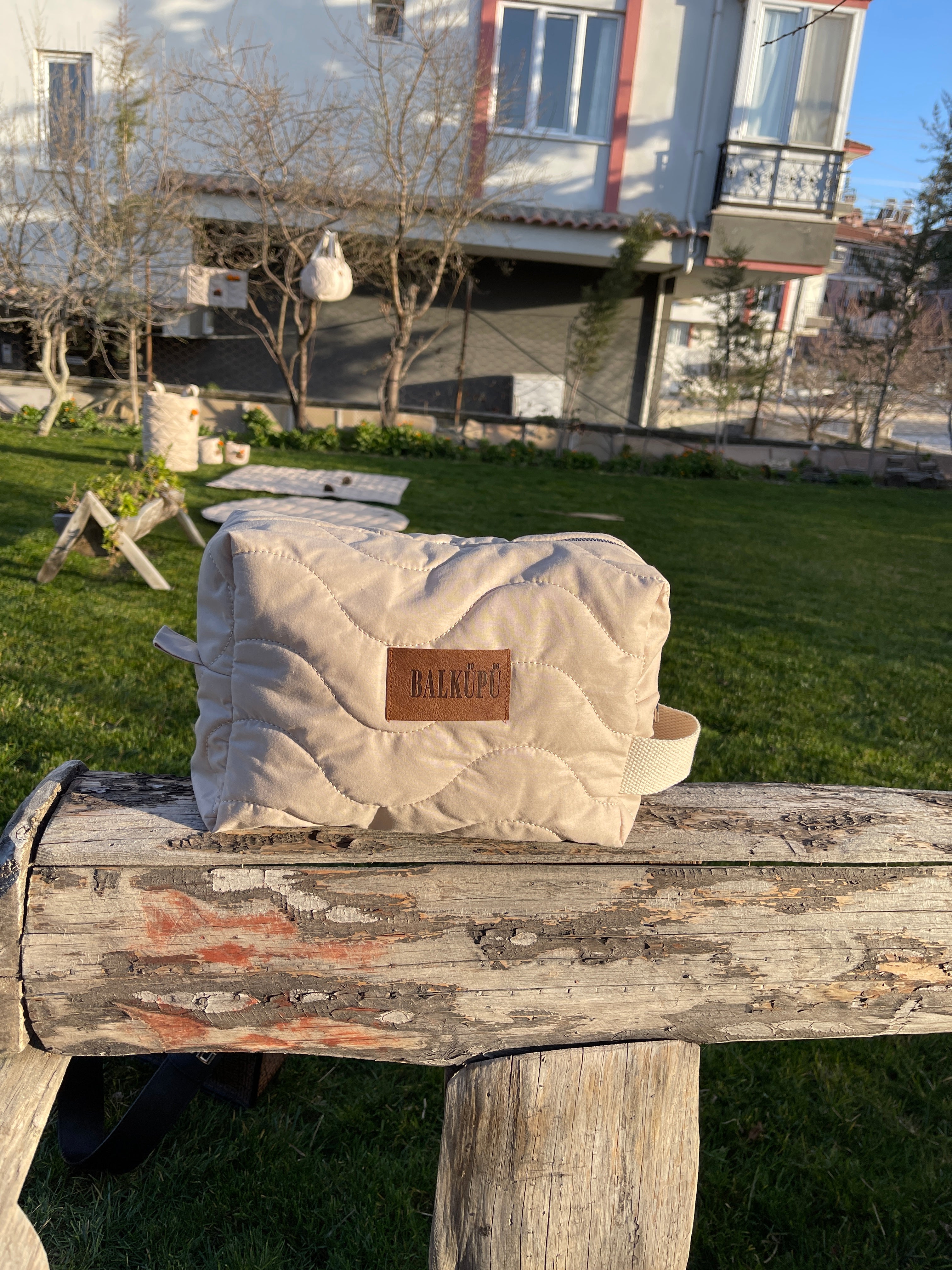 Organik Pamuklu Organizer Bakım Çantası - Kum beji
